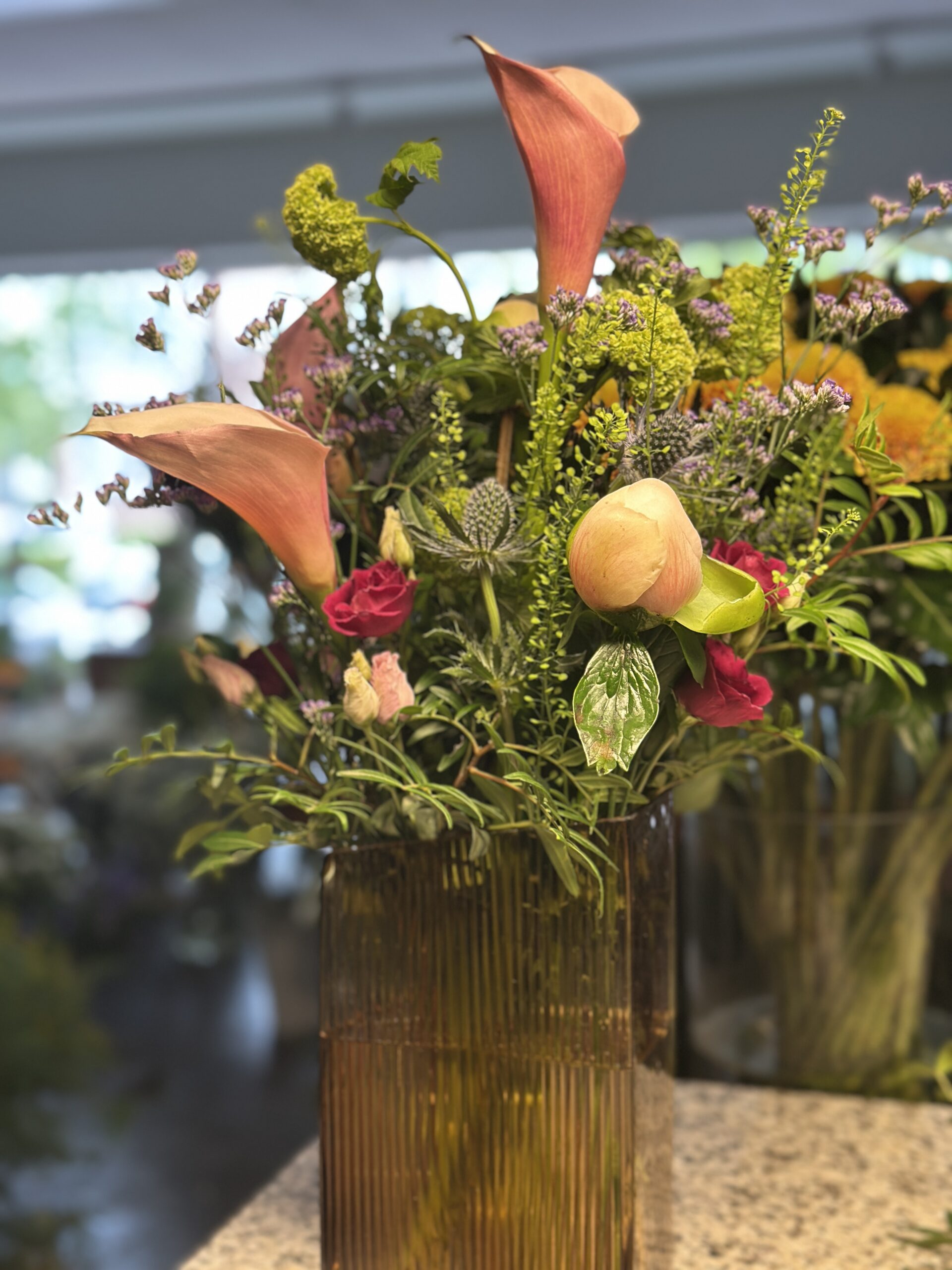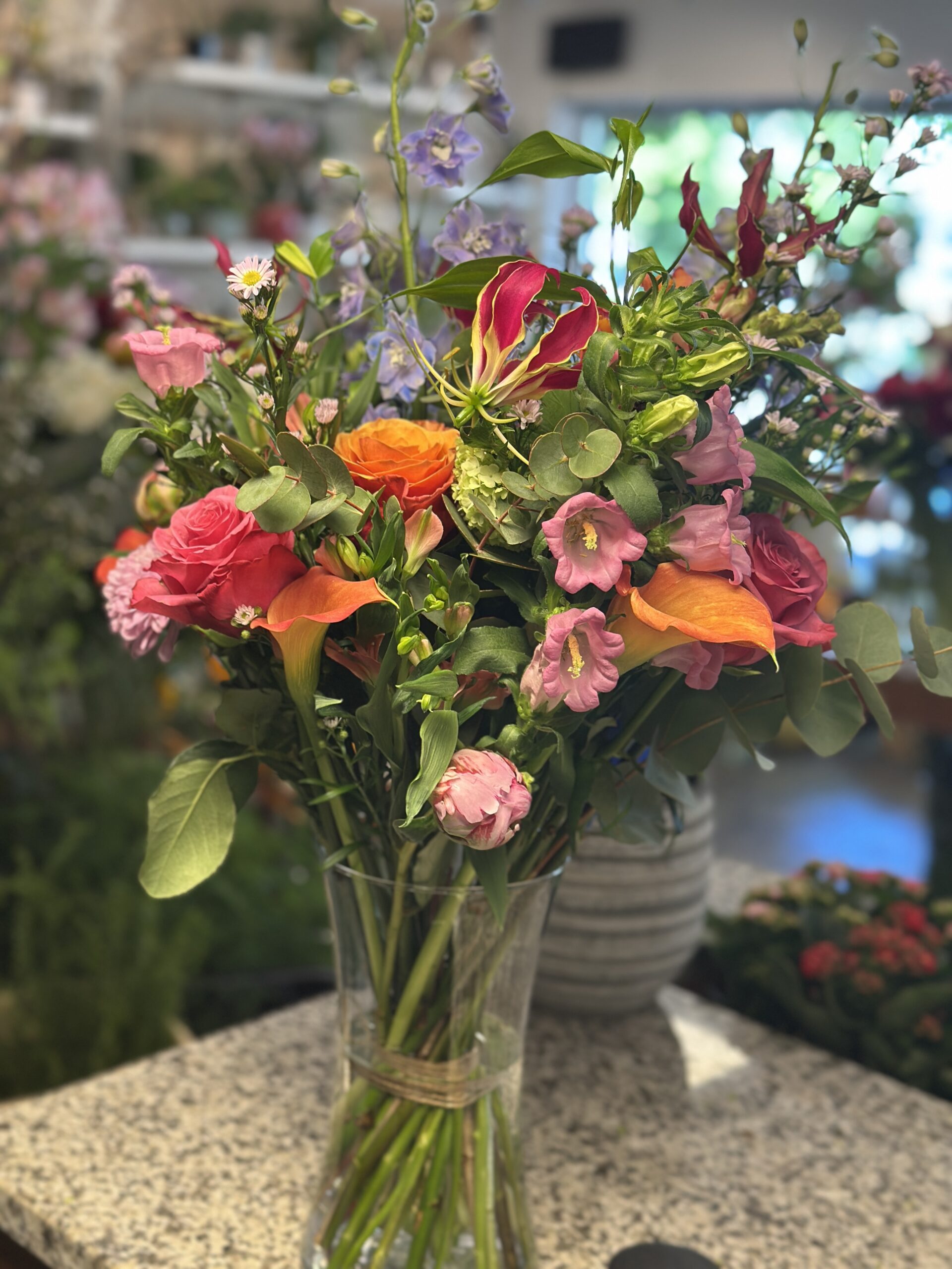 Chaque bouquet est une création unique. Selon les saisons, les variétés peuvent varier, mais l’esprit et l’harmonie des couleurs seront toujours respectés.