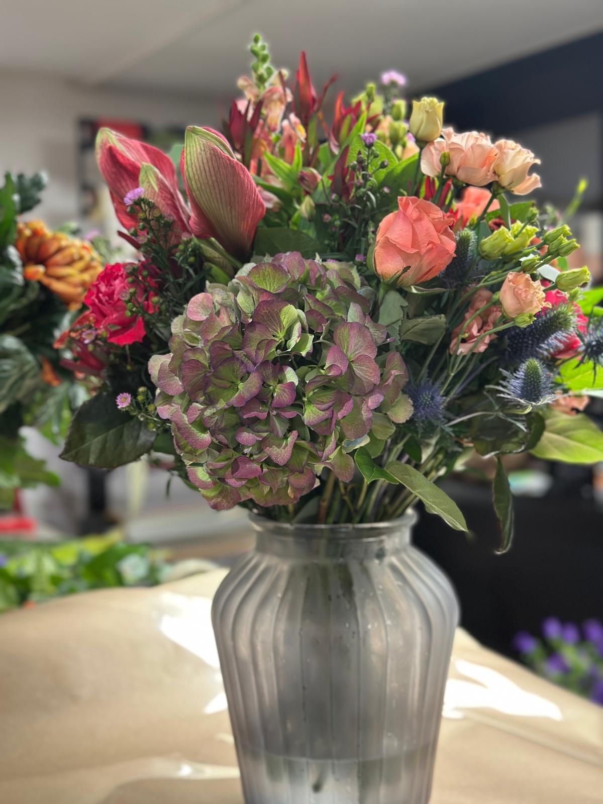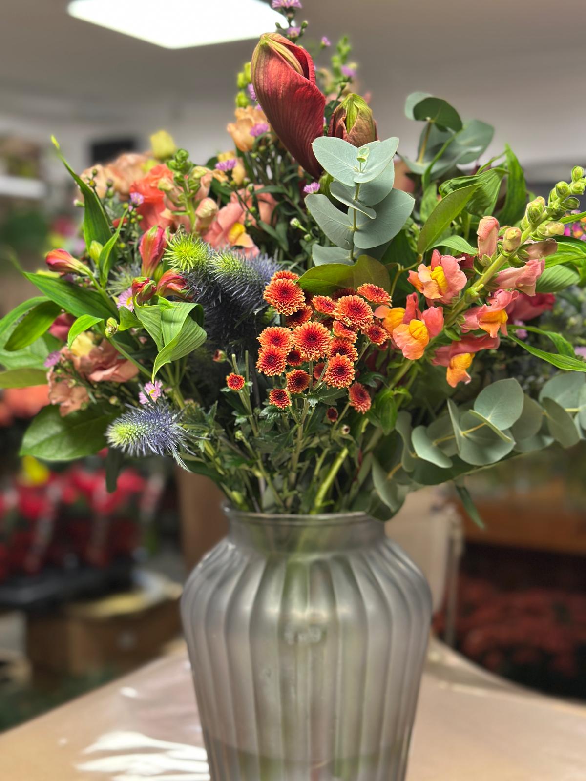 Les photos ne sont pas contractuelles.  Chaque bouquet est une création unique. Selon les saisons, les variétés peuvent varier, mais l’esprit et l’harmonie des couleurs seront toujours respectés. (le vase n’est pas compris)